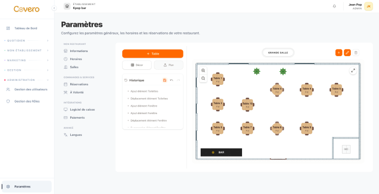 Interactive floor plan, table management and tablet menus. Optimize your service and occupancy rate.